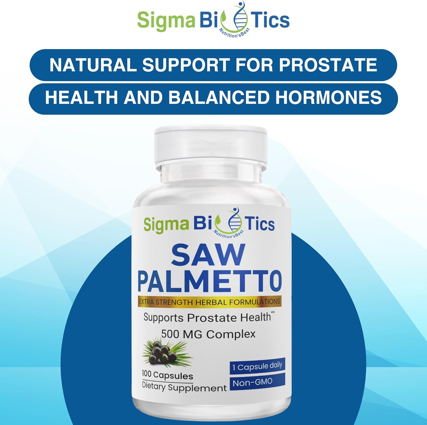 Sigma Biotiocs Saw Palmetto Supplement for Men – 500 mg with 45% Extract – Prostate Health & Hormone Balance Support – Non-GMO Dietary Supplement for Urinary Health – 100 Capsules
