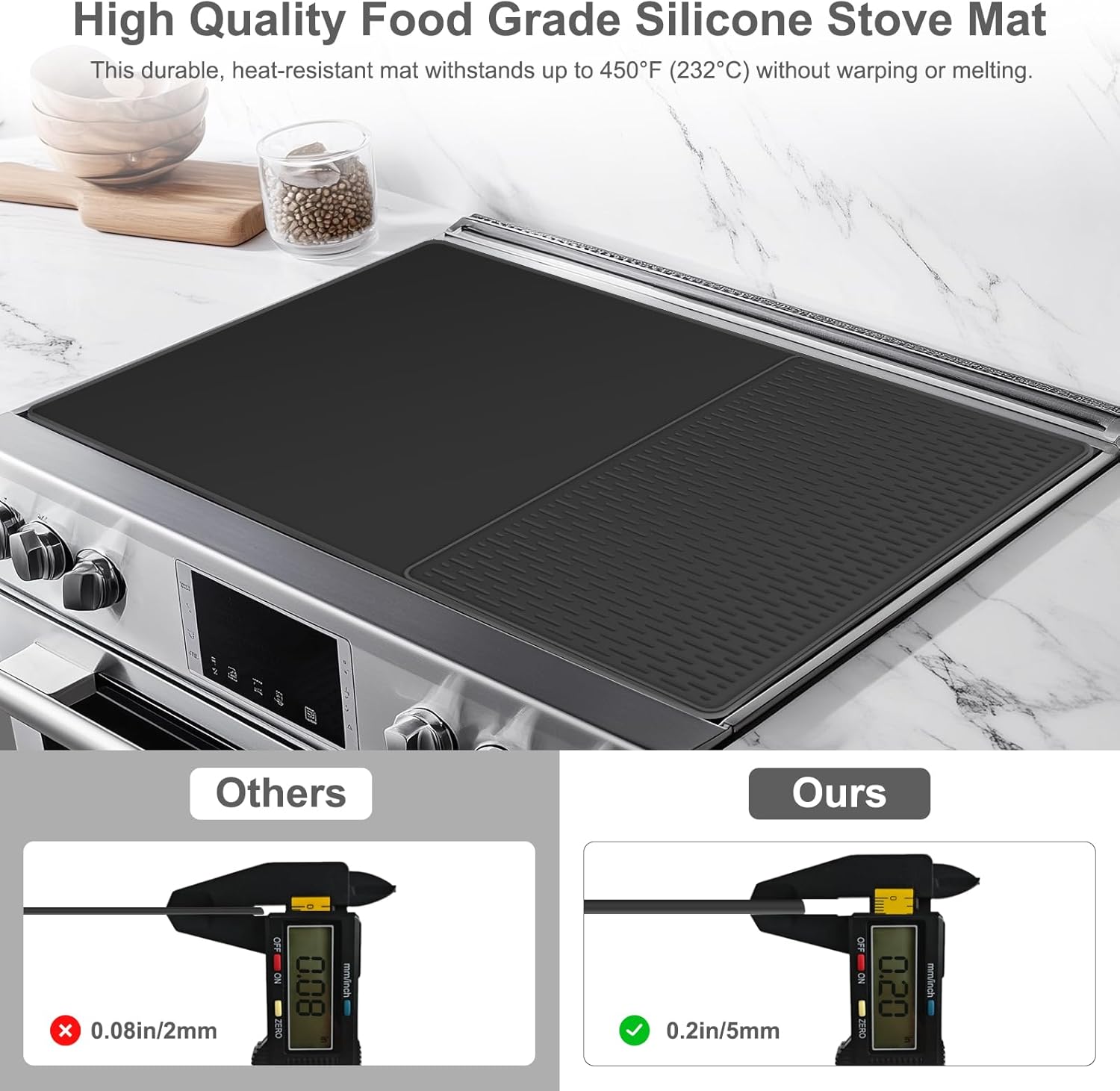 Large Mat (28″ x 20″): Features a smooth, nonstick surface to protect countertops from heat and spills. Effortlessly wipes clean.