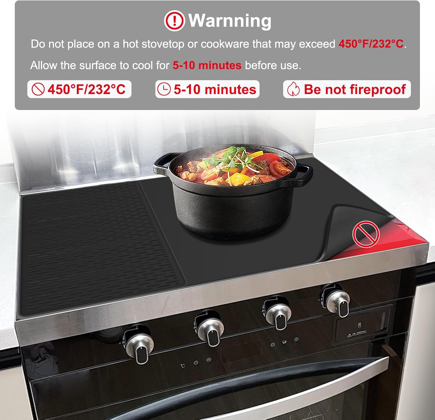Electric Stove Top Cover – Our silicone glass stove top cover protector for electric stove is perfect for protecting your electric stove top, kitchen countertop, electric range top, table or washer dryer top from scratches, spills, stains, scrapes and dirt. Designed to fit most glass-topped induction cookers, it instantly creates extra counter space for your culinary adventures. Includes a large (28″ x 20″) and small (20″ x 12″) mat for full coverage. *Use only on a cool stove