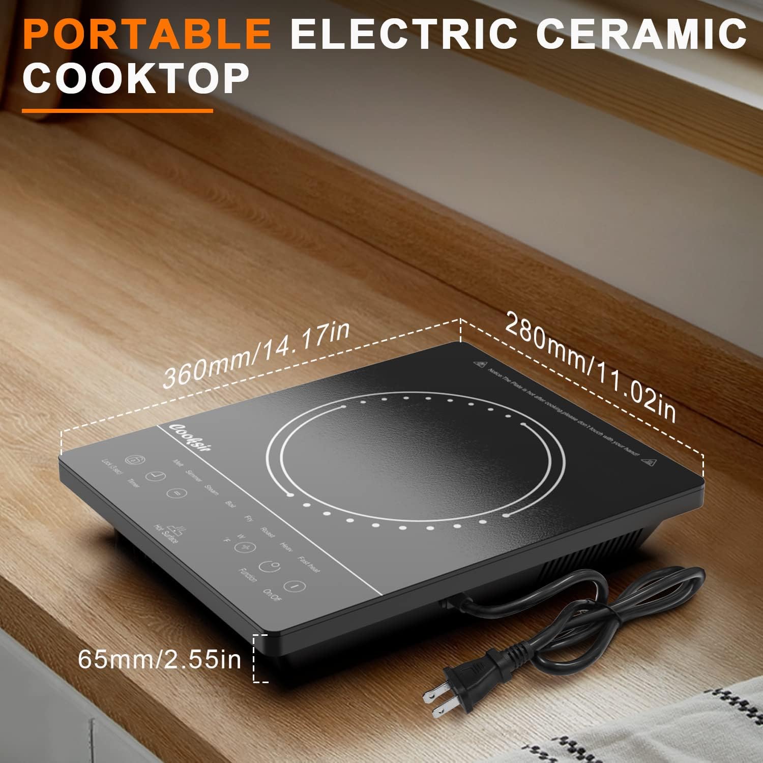 【Portable and Compact】 Cooksir portable electric cooktop with sensor touch control, through the light and sensitive touch screen you can operate it more easily and quickly. Its small size is easy to move and store, does not take up much space and is suitable for family with little space in the kitchen and for use when camping.