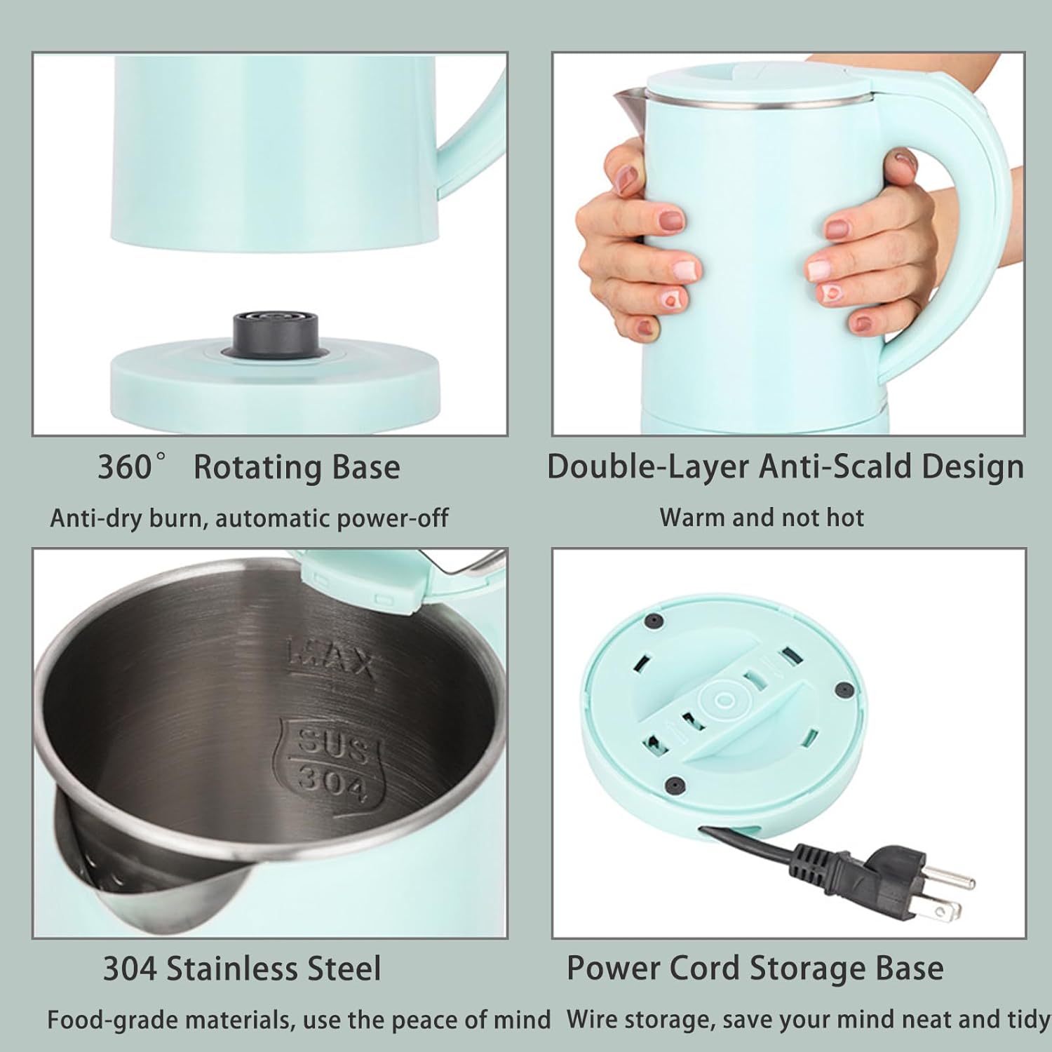 【Precise Temperature Control, Multiple Protection】This small electric kettle has high temperature protection, automatic power off when water is turned on, automatic power off from dry burning, etc., double-layer hollow anti-scald design, heat insulation and anti-scalding.