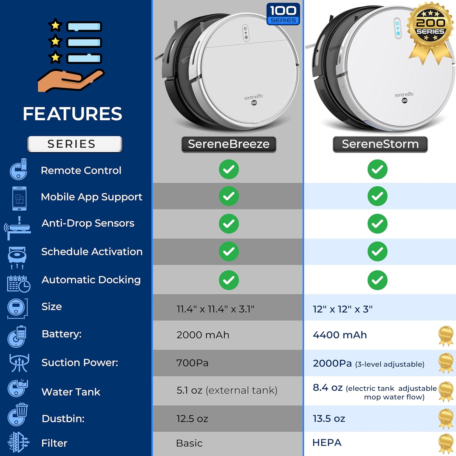 APP CONTROL AND SCHEDULING – Control and schedule cleaning from anywhere using the SereneLife mobile app. Vacuum mop all in one also features Bluetooth for customizing cleaning paths, start/stop sessions, and monitor cleaning progress in real-time