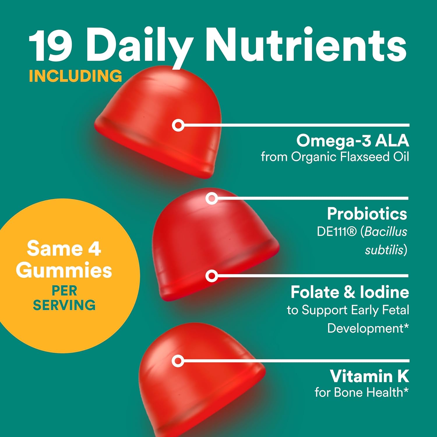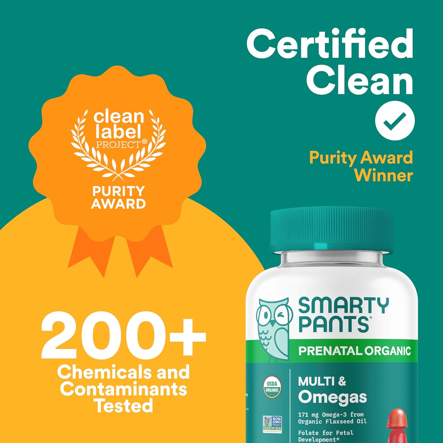 SmartyPants Organic Prenatal Vitamins for Women, Multivitamin Gummies: Probiotics, Biotin, Methylfolate, Omega 3 (ALA), Vitamin D3, C, Vitamin B12, B6, A, K2 & Zinc, Choline, 120 Count (30 Day Supply)