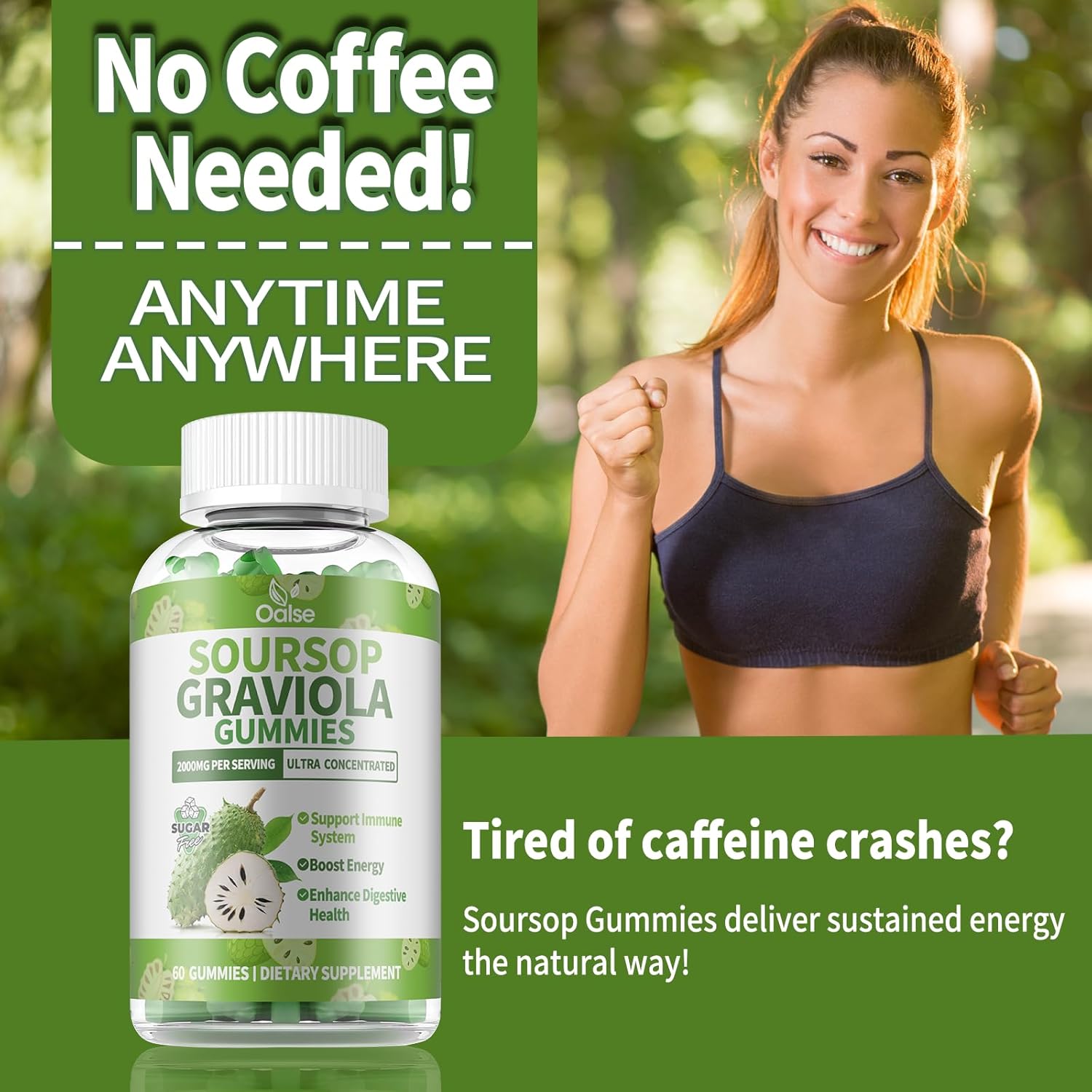 Combining taste and nutrition: Getting flavor and health in the process of chewing is the most important reason why we choose gummies. Say goodbye to capsules and powders that are hard to swallow. We are able to take 2 gummies anytime, anywhere without the help of any water, tea, coffee, milk, etc. Our Soursop Graviola Gummies contain no sugar, yet still retain the delicious taste of soursop, protecting your teeth and blood* while feeling the power of health!