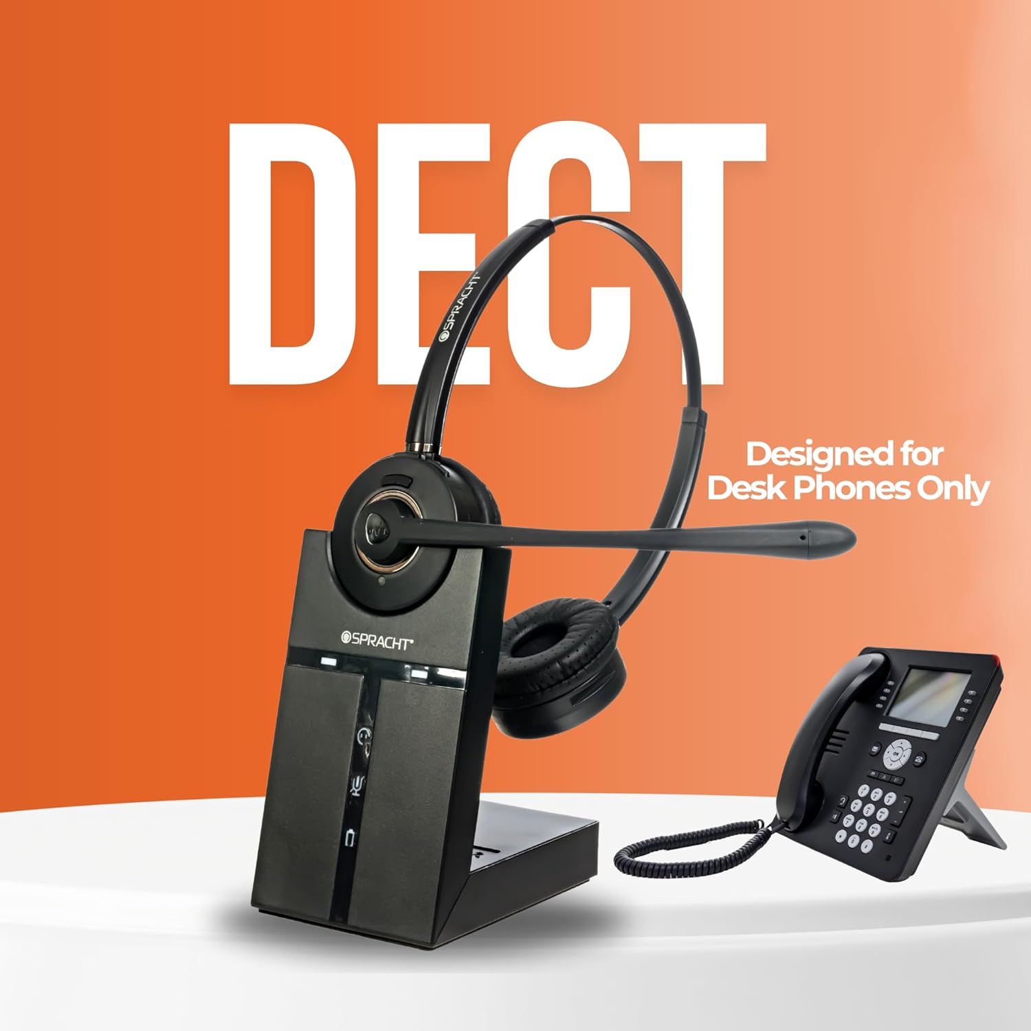 Spracht HS-2019 Wireless Headset – Dual Ear DECT Headset with Mic for Work, 350FT Range, 21 Hour Talk Time, Lightweight, Noise Cancellation, Ideal for Work From Home & Office Workers, Telephone Only