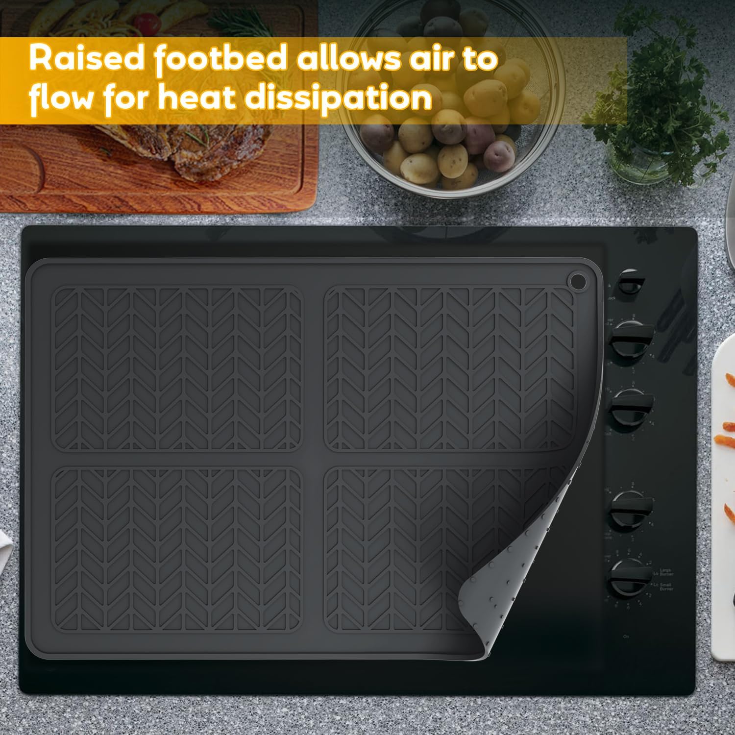 【Kitchen Drying Mat】silicone stove mat for glass top stove unique design of wide raised line ridges increases air circulation, improves ventilation, and catches drips . Its high edges and waterproof bottom prevent spills, keeping countertops dry and pristine, making it the perfect kitchen drying mat.rv stove top cover serves as a versatile workbench, expanding your food preparation area with ease.
