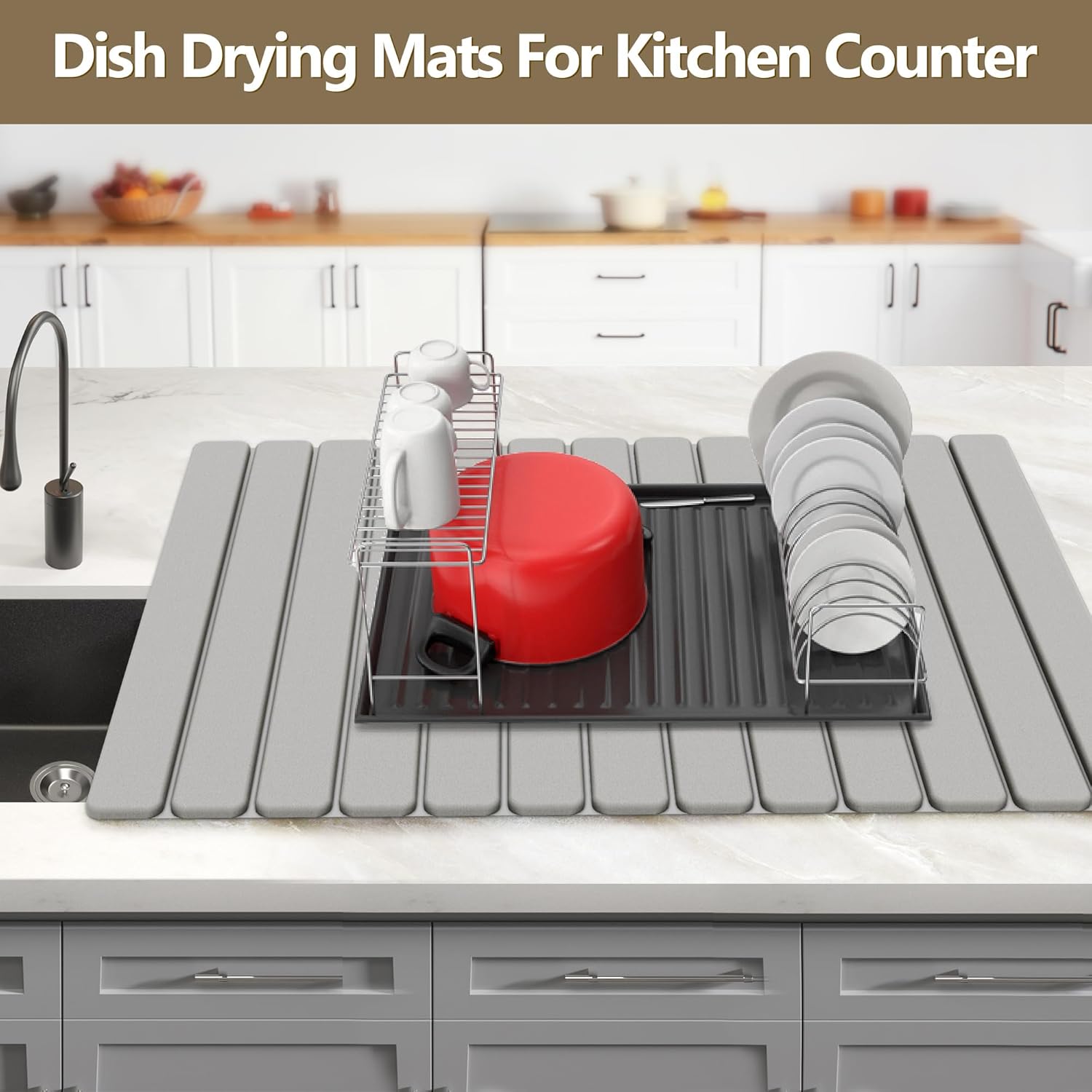 【Kitchen Drying Mat】This dish drying stone with excellent water absorption,separated countertop design increases air circulation, and can quickly absorb the dripping water from cleaning utensils, cups, fruits, and vegetables;Keep the countertop consistently dry and pristine, bidding farewell to issues of dampness,making it an ideal drying mat for kitchen counter.