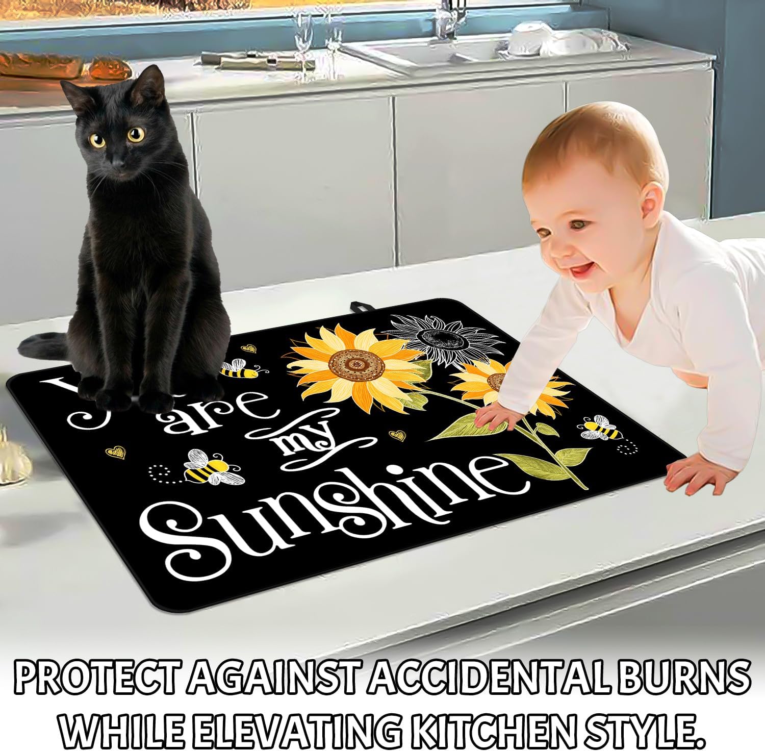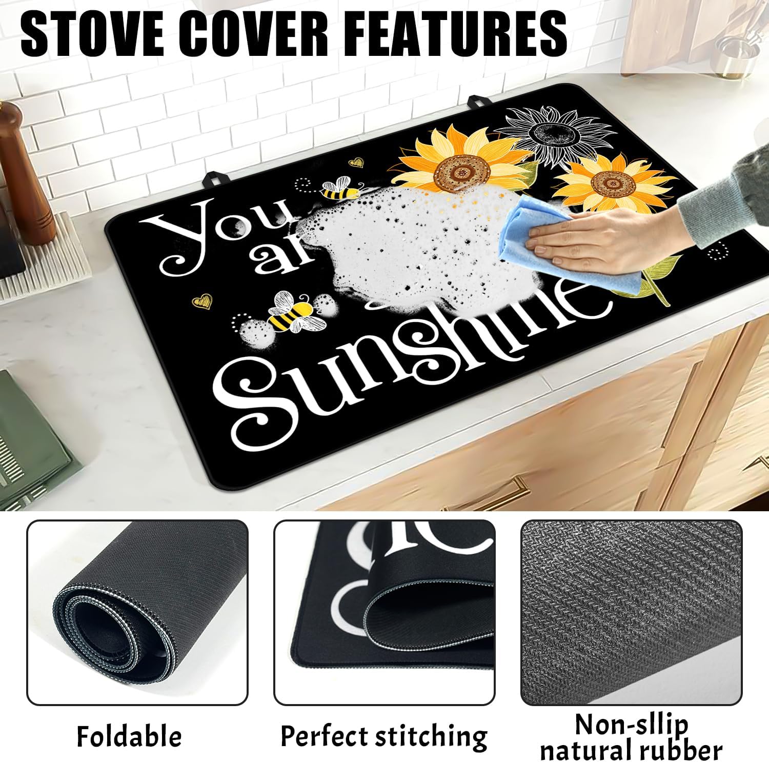 Stove Top Covers for Electric Stove, You Are My Sunflower Heat Resistant Glass Stove Top Cover for Gas Stove, Black Induction Cooktop Protector Pad Ceramic Stove Top Covers Mat Kitchen Oven Cover