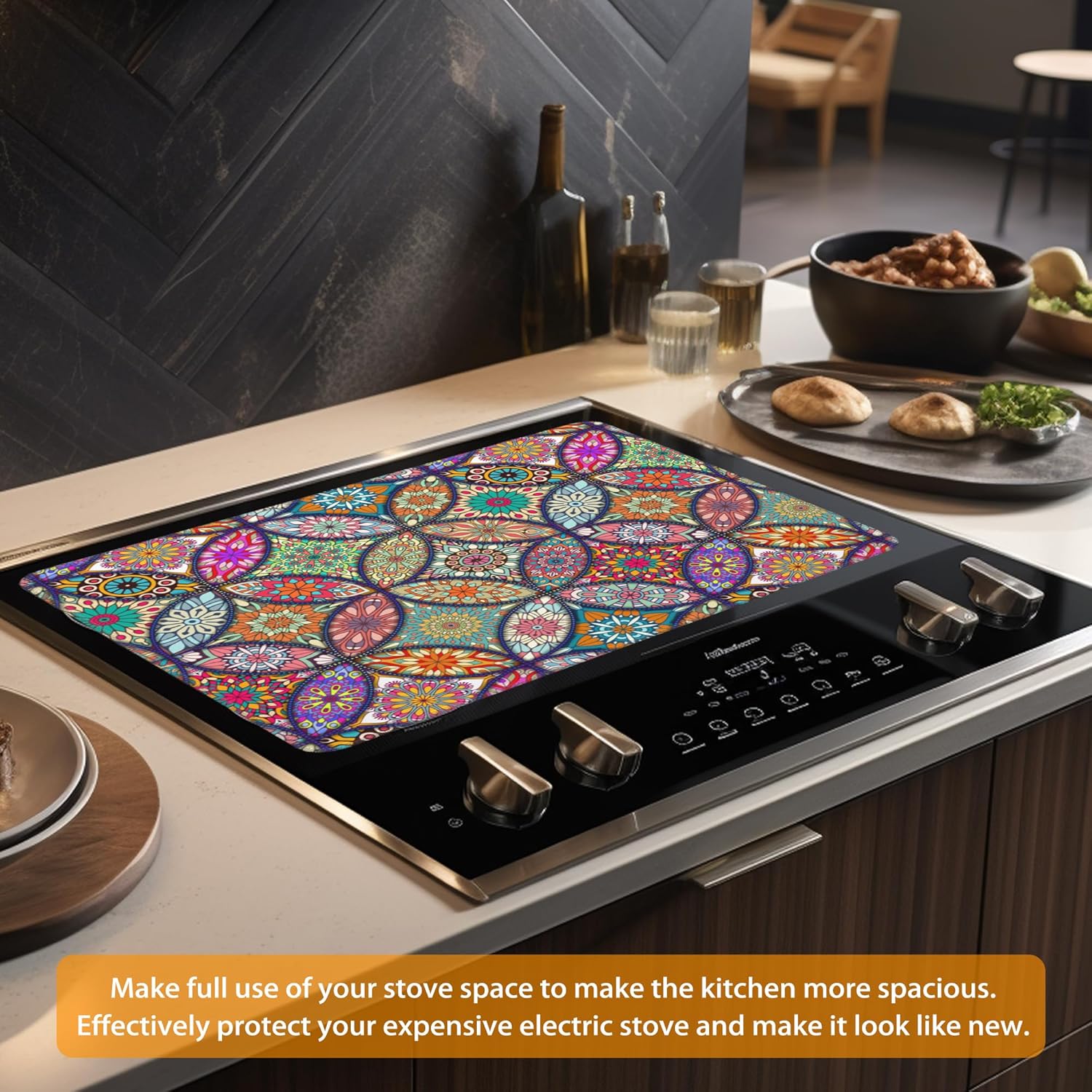 Stove Top Covers, Religious Retro Flower Heat Resistant Glass Stove Top Cover- Multipurpose Protector for Electric Stoves and Kitchen Surfaces,Dishwasher Safe Natural Rubber (28″x19.5″)