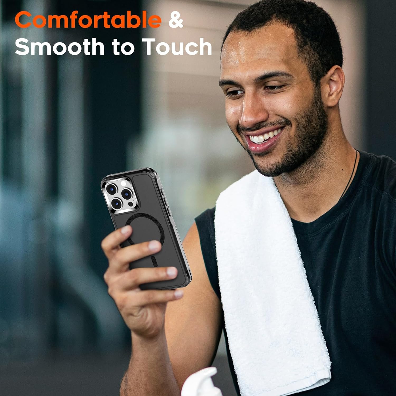 Skin-Friendly and Comfortable Grip: This iPhone 15 pro cover is ergonomically designed for a comfortable grip, while the frosted texture on the back solves the problem of leaving fingerprints and smudges, and is also non-slip and scratch-resistant
