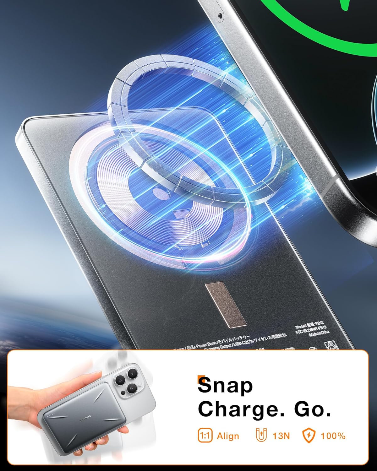 Snap and Go: The slim MagSafe battery pack comes with powerful magnets of 13N, firmly attaching to iPhone 16/15/14/13/12 series. This portable iphone charger simply snaps into and charges your device. Bid farewell to hassle and enjoy a seamless charging experience.