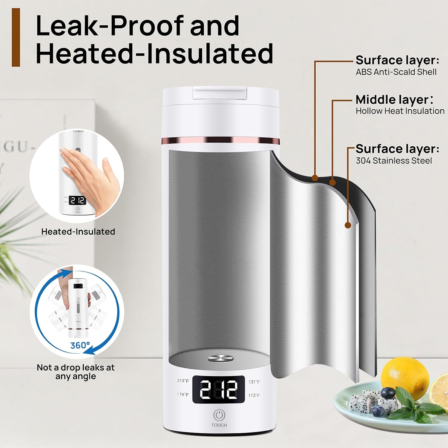 Travel Portable Electric Kettle, Tea Coffee Kettle, Mini Hot Water Cup for Rapid Heating & Boiling, Leak Proof & Heated-Insulated Design, 450mL & 304 Stainless Steel with 4 Preset Thermal Control