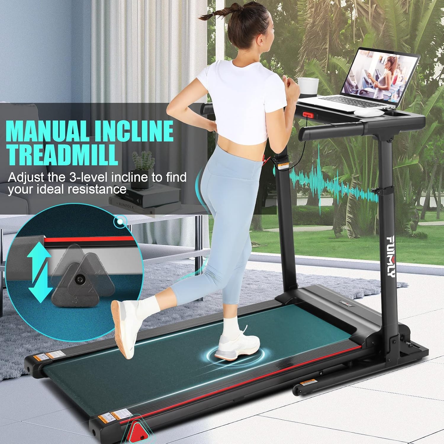 Treadmill with Desk Workstation & Adjustable Height, 300 lb Capacity, FUNMILY Walking Pad Treadmill with Desk & Incline, Folding Work Treadmill for Home Office