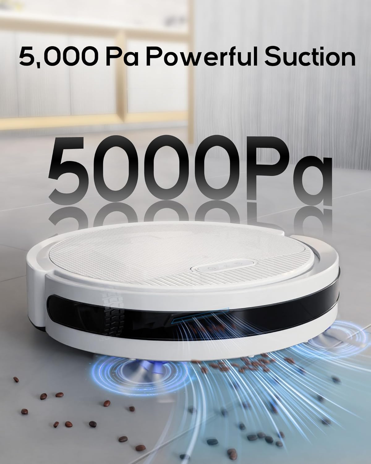 Ultra-Slim Design – At just 2.99 inches high, it fits under furniture and crosses thresholds up to 0.6 inches. 5000Pa suction ensures top-notch cleaning performance.