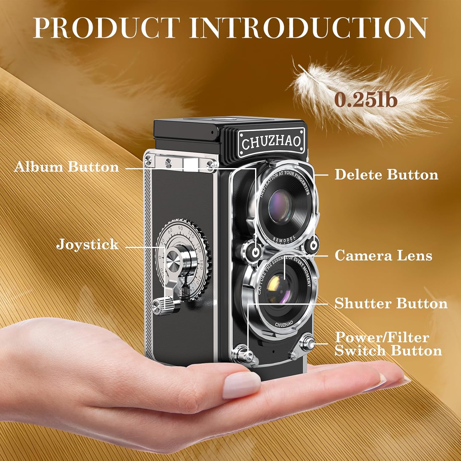 ShinePick retro camera is classic and stylish, with a unique joystick design and lightweight design, which can easily capture the beautiful moments in life. It is very suitable for travel, adventure and daily life use.