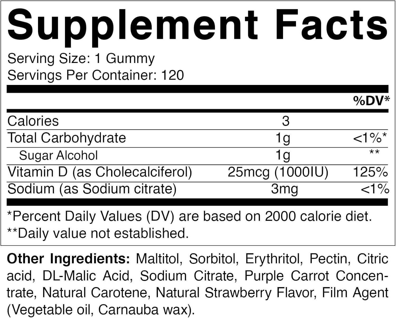 Vitamatic Sugar Free Vitamin D3-120 Pectin Based Gummies – Great Taste – Healthy Bones, Mood & Immune System Function – Non-GMO – 120 Servings (1000 IU)