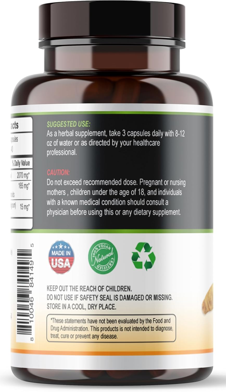 ENHANCED ABSORPTION: Our formula features black pepper extract, a natural booster that enhances the bioavailability of curcumin by up to 2000%, ensuring you get the maximum benefit from each capsule.