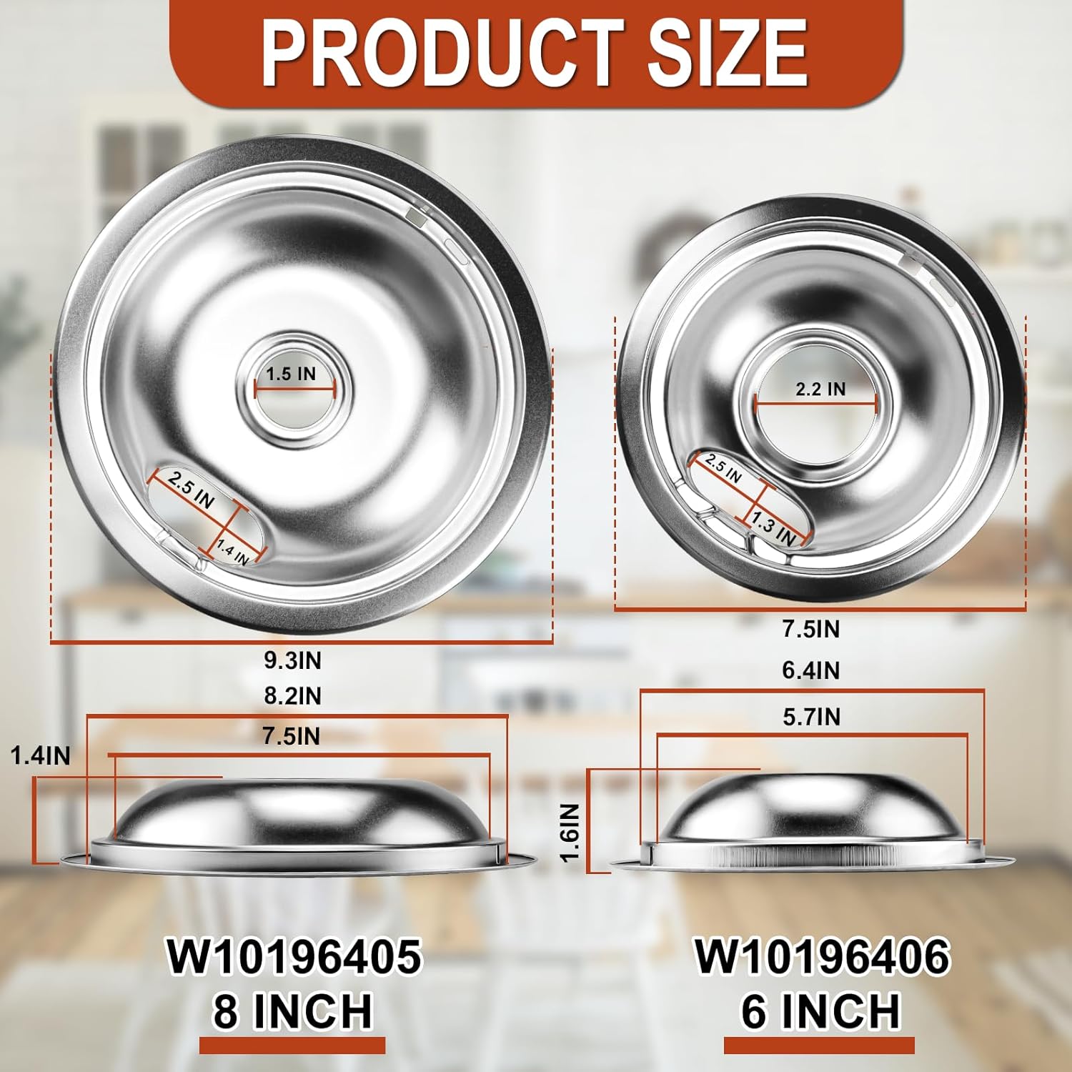➽[ WIDELY COMPATIBLE ]:▶W10196405 stove drip pan replaces numbers: 1481881, AP6016814, EAP11750107, PS11750107, etc. W10196406 electric stove drip pan replaces numbers:1534547, AP6016815, PS11750108, EAP11750108, 256691, 296481, 1065207,etc▶MP21YA stove coils for electric stove replaces numbers: WPY04100166, 4381750, Y0E00801799, 400178, 19950009, 1938-344,etc.▶MP15YA stove top burners replaces numbers: WPY04100165, Y707456, Y703422, Y0E00601299, MP15MA, MP12MA, 7406P048-60, 74005446,etc