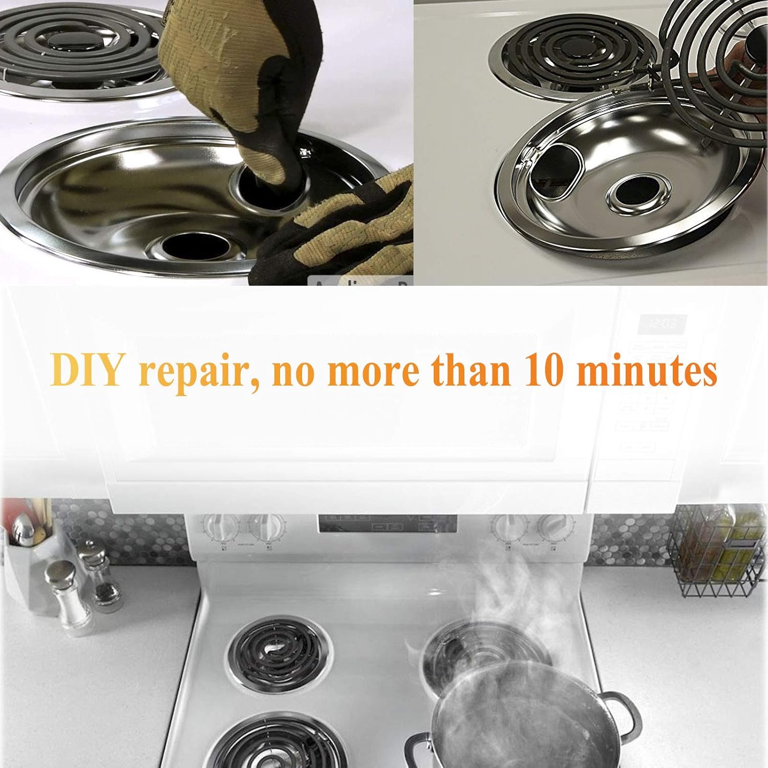 【Product Highlights】 The stove top drip pans for electric stove with non-sticky material, brilliant chrome surface and easy to clean. The stove drip pans replacement fits the stove properly and prevents the drip tray element from wobbling, thus preventing the cookware on the stove from wobbling