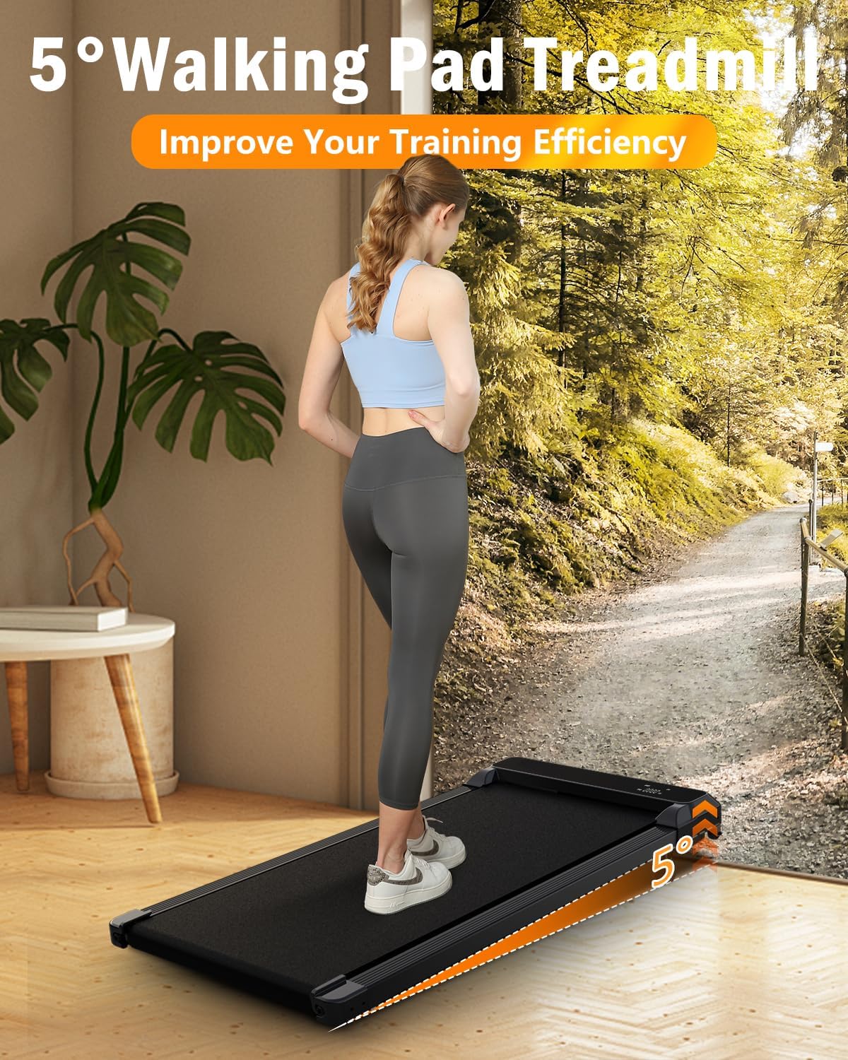 5% Manual Incline Treadmill: Our under-desk walking pad features a manual 5° incline to boost calorie burn and workout intensity. Seamlessly switch between walking, jogging, and running modes, perfect for targeting fat loss, endurance training.