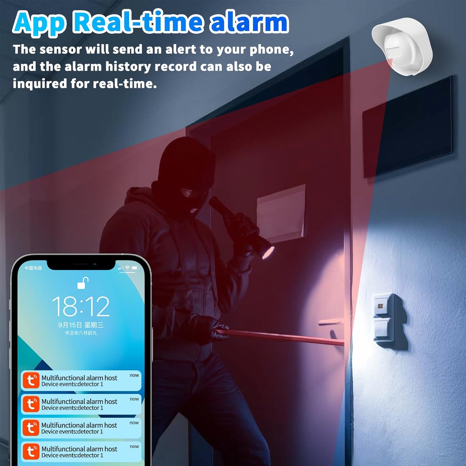 💥【Advanced Security System】: The HoneTeek Smart Motion Sensor provides reliable wireless home security with its 120-degree detection range and real-time monitoring of human infrared signals. Long Range Transmission Completely Wireless, it offers maximum detection distance of 12 meters which can monitor the moving object in real time during the day and night, ensuring comprehensive coverage of your premises.