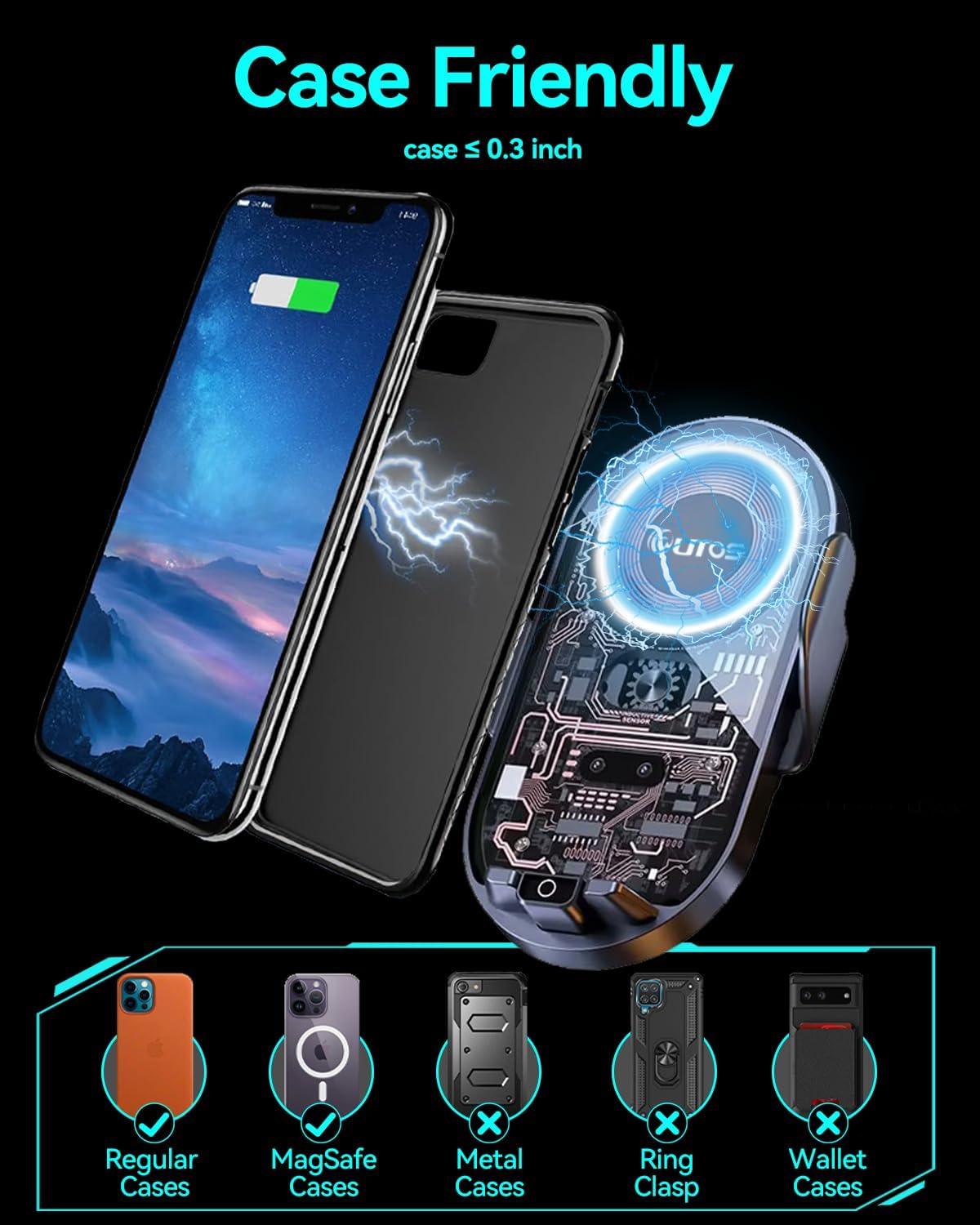 【15W QI Fast Wireless Car Charger】This advanced wireless phone charger for car automatically detects your phone’s optimal charging power, ensuring efficient and rapid charging every time. For devices that don’t support wireless charging, we provide a Magnetic Type-C adapter and a Magnetic micro adapter for convenient charging. Please note that if your phone supports wireless charging, do not use the magnetic plug, as it may cause overheating and prevent charging. Additionally, you have the option to press the bottom button for wired charging whenever needed.
