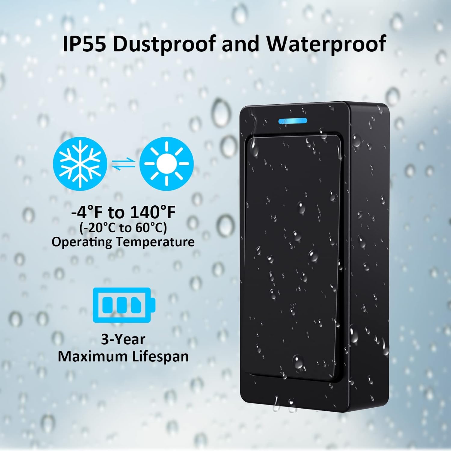 Suitable for Various Environments: Weather-resistant design, capable of operating within a temperature range of -4°F to 140°F, suitable for various climate conditions.