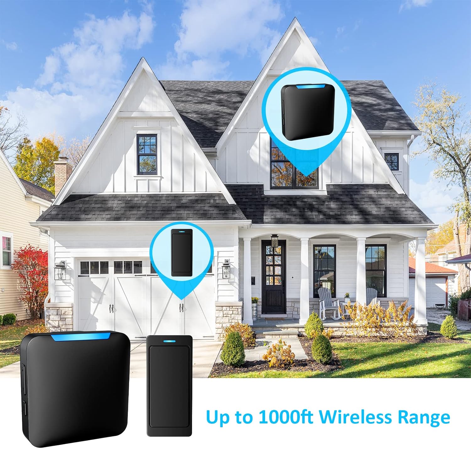 Wireless Transmission: Long-range wireless transmission up to 1000 feet, providing reliable connectivity in open areas, ensuring you hear the doorbell from anywhere.