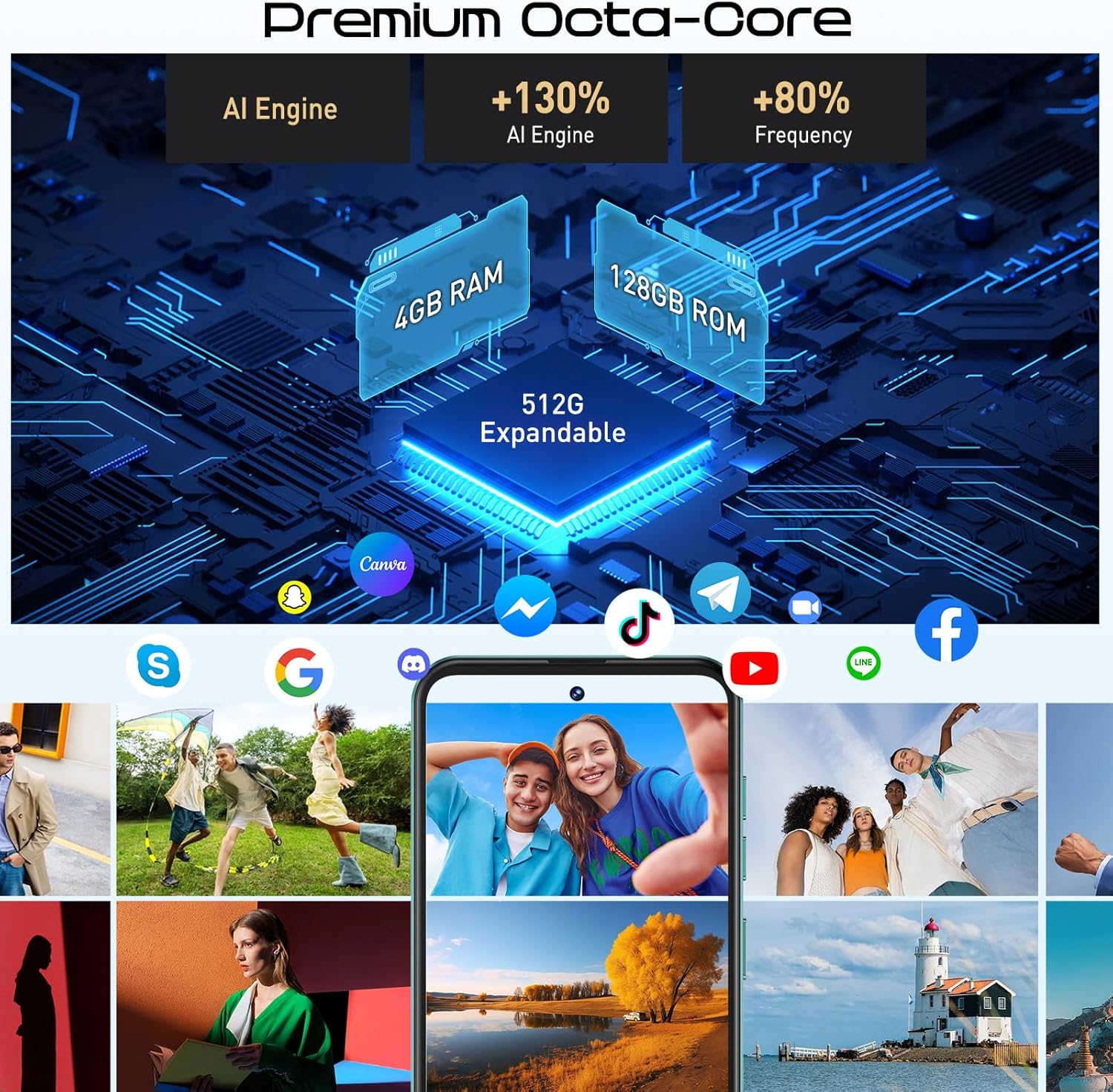 Android 10.0 OS 128GB ROM+ 514GB Expanded Memory? Xgody MATE 60 4G unlocked Android phone is equipped with high-performance Quad-Core technology MediaTek MT6762 chip. Armed with 4GB RAM 128GB ROM. Can be expanded to 514GB throughMicroSD card (Not Included). The built-in Android 9.0 operating system allows you to enjoysmooth experience when playing games, browsing videos, and video chatting.good life starts from this moment.